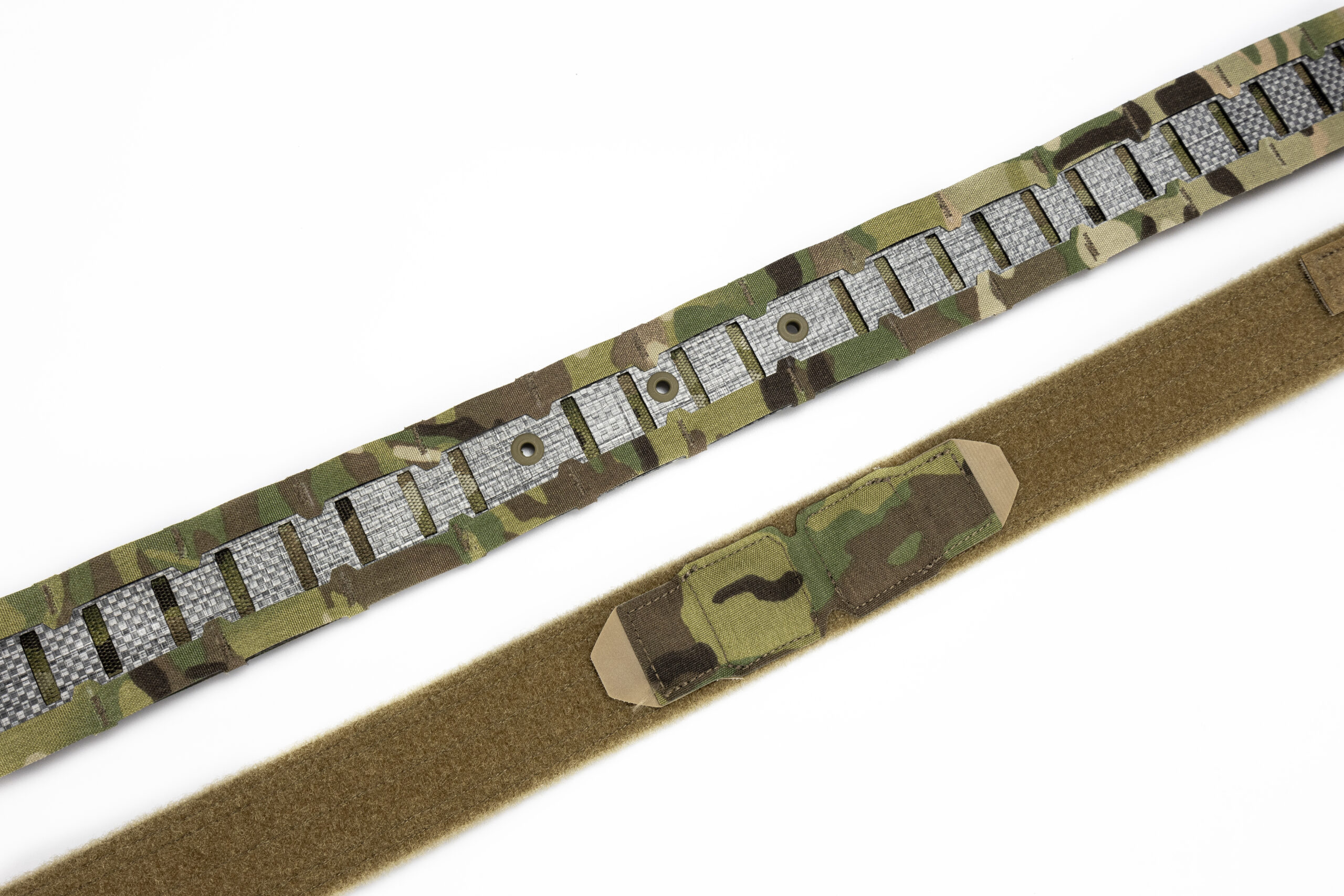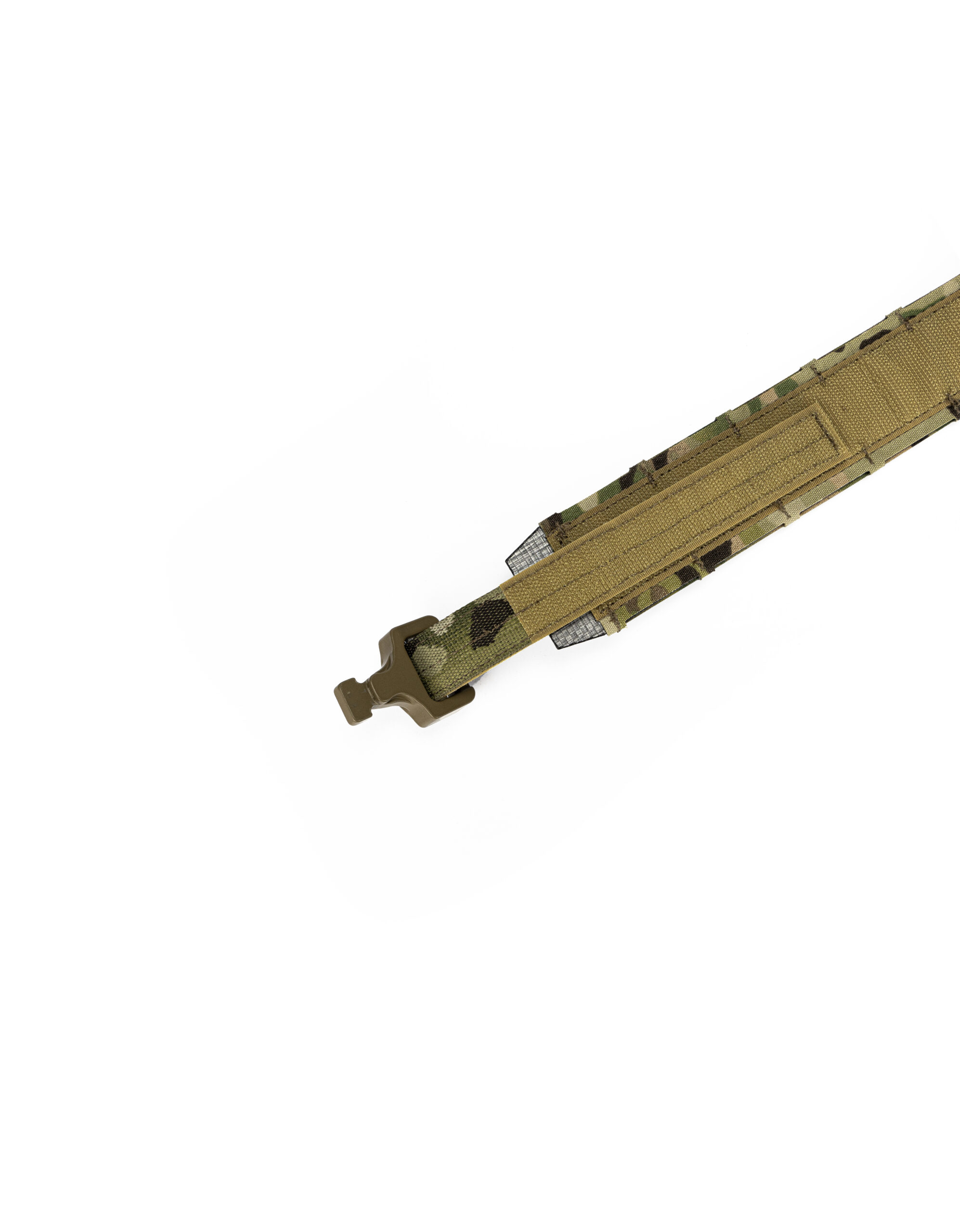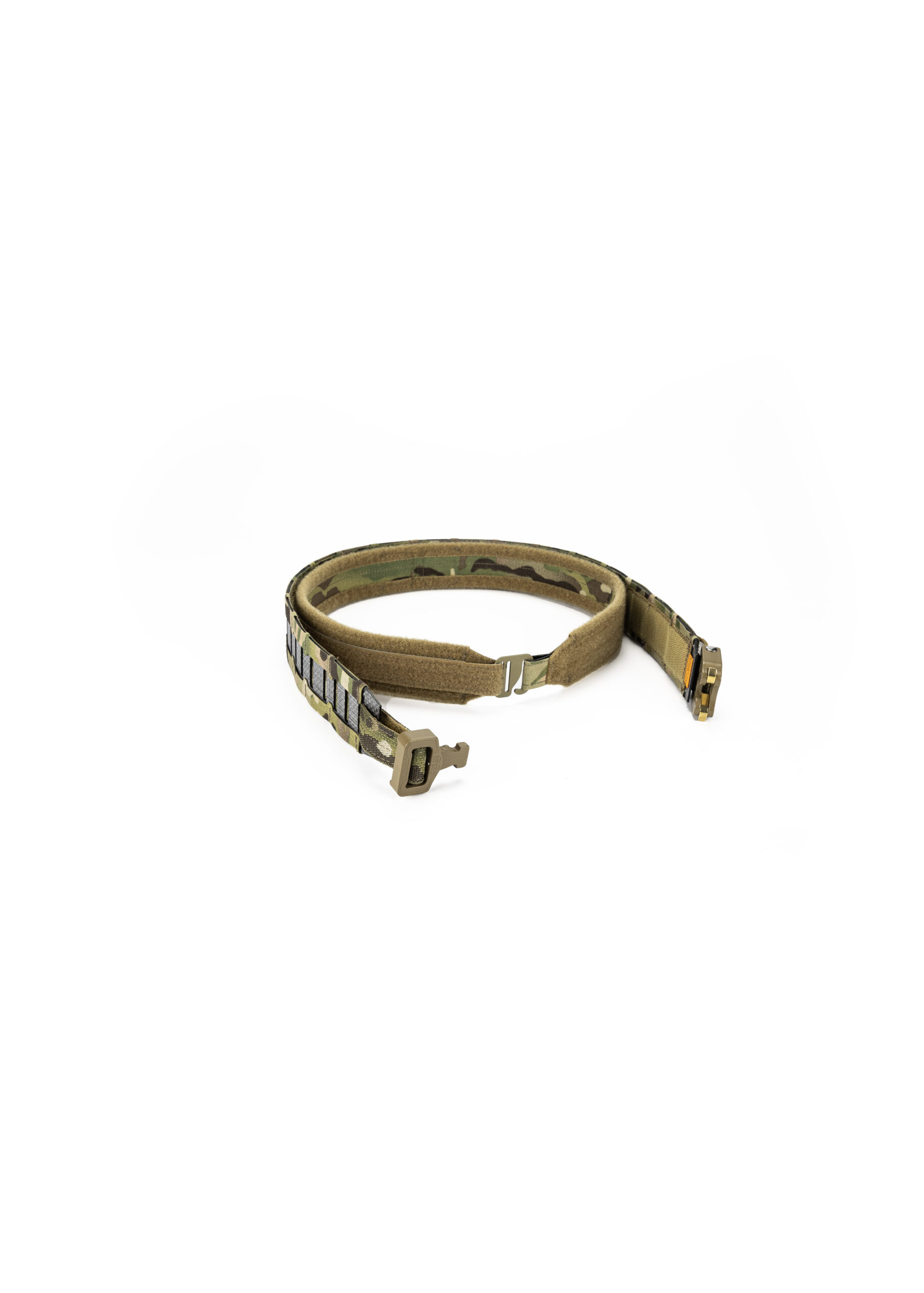 Пояс складається з двох шарів: основний шар – це пояс з моллі та фіксованими магнітами,  другий шар – це брючний пояс з велкро, гачком та змінними магнітами, який продівається в шьовки на штанах і на нього вдягається основний, тим самим створюючи надійну платформу для вашого спорядження.