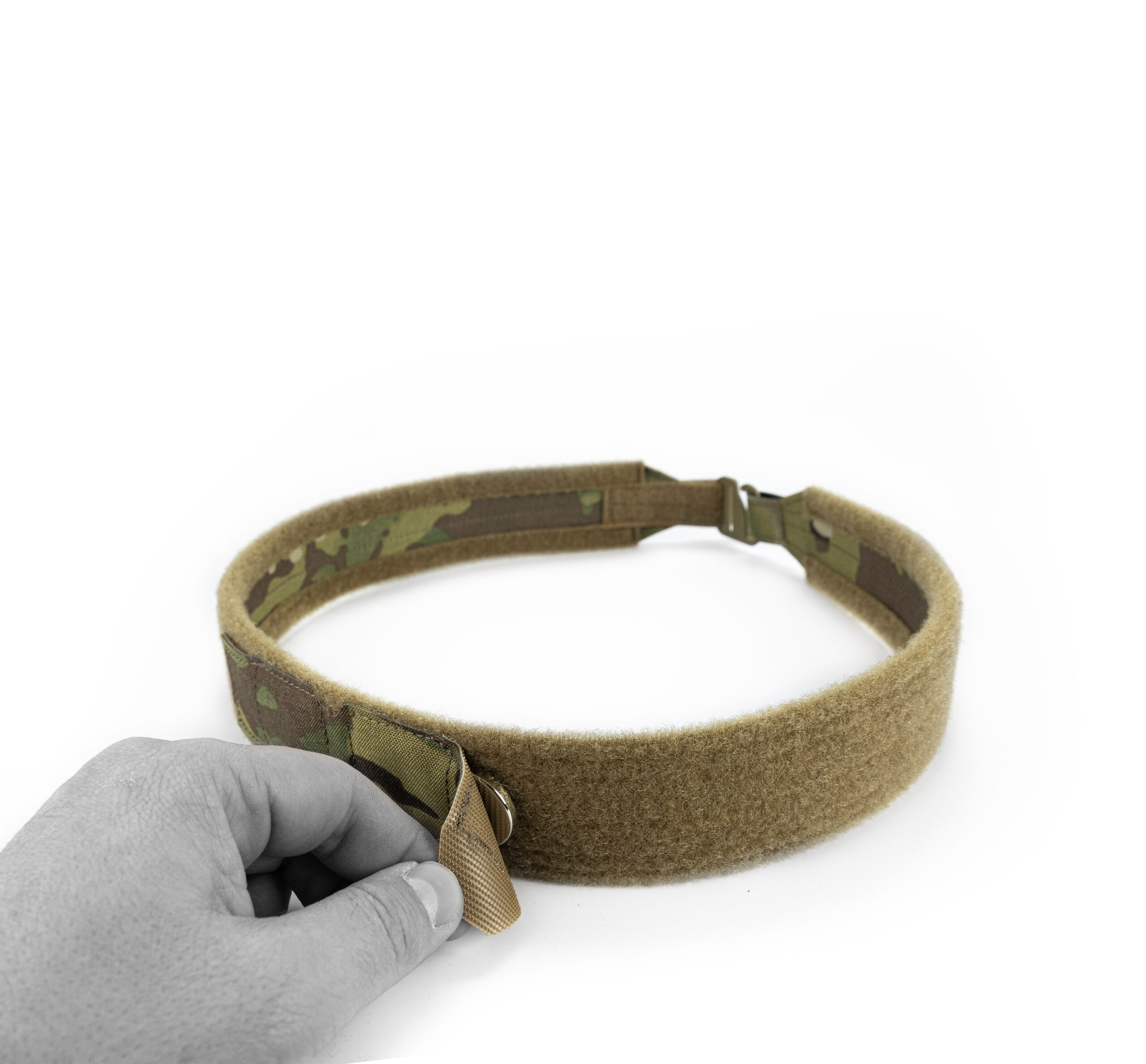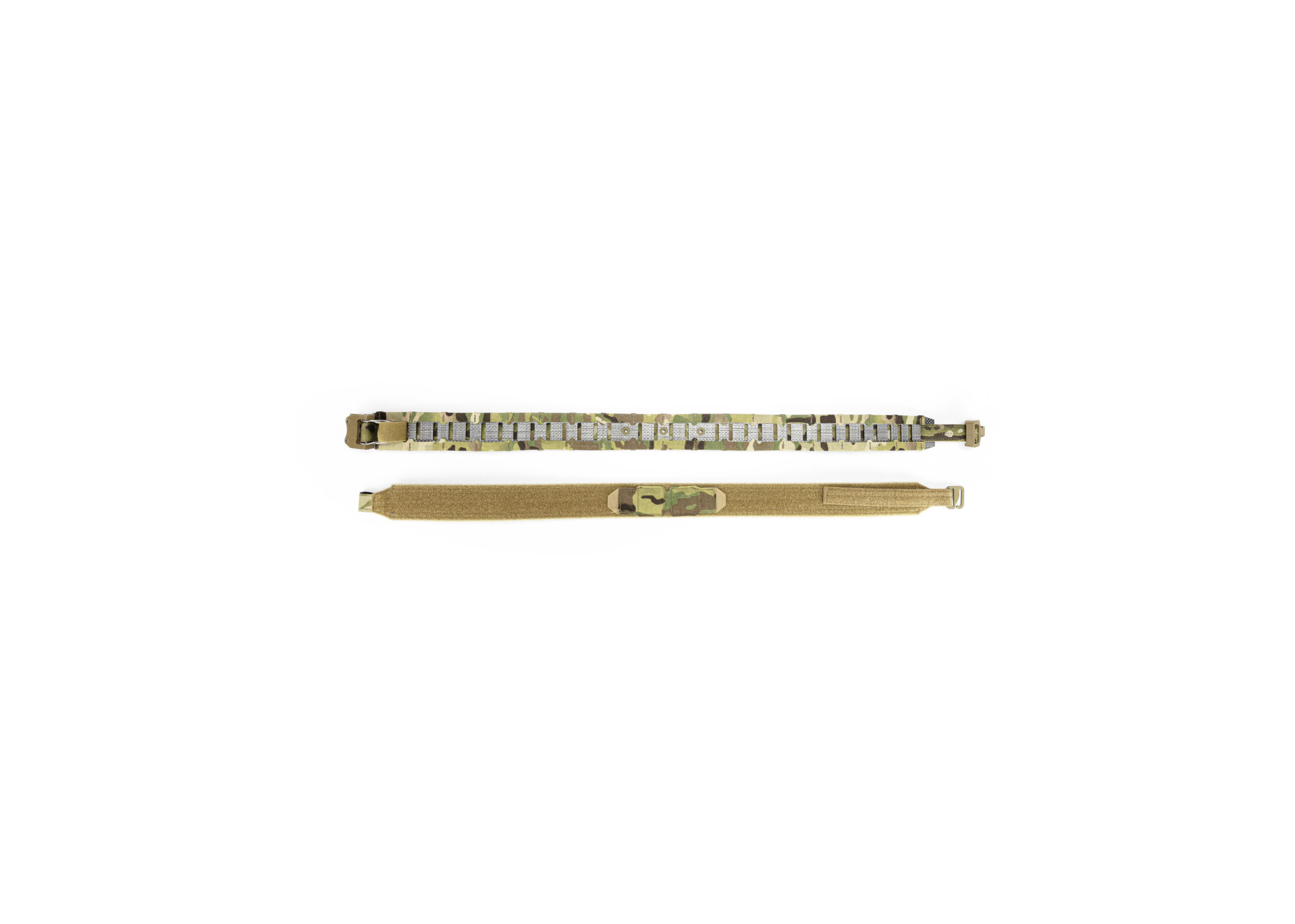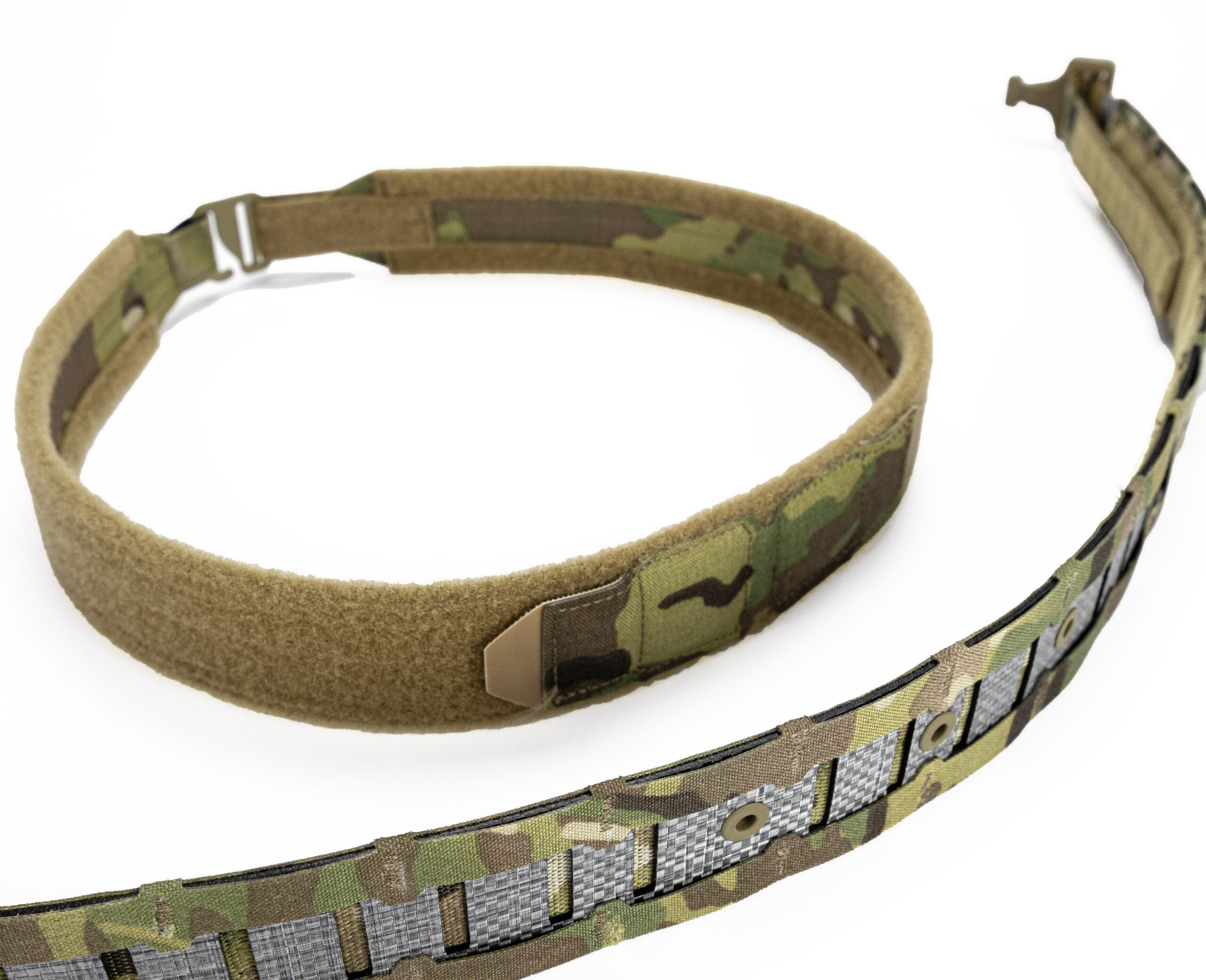 Пояс складається з двох шарів: основний шар – це пояс з моллі та фіксованими магнітами,  другий шар – це брючний пояс з велкро, гачком та змінними магнітами, який продівається в шьовки на штанах і на нього вдягається основний, тим самим створюючи надійну платформу для вашого спорядження.