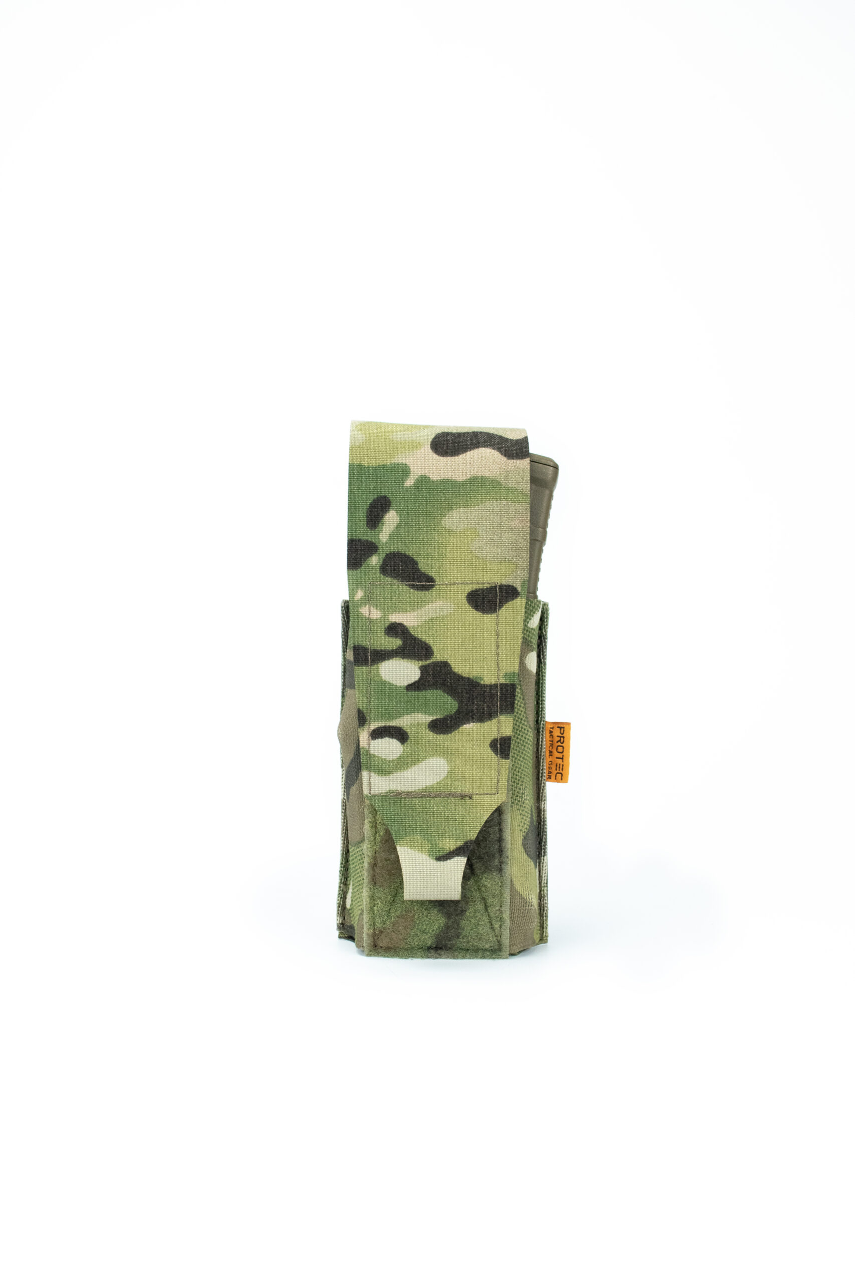 Магазини надійно фіксуються в підсумку завдяки еластичній гумці в мультикамі висотою 13 см та з’ємному клапану на велкро. Використовувати підсумок можна як з клапаном, так і без нього.