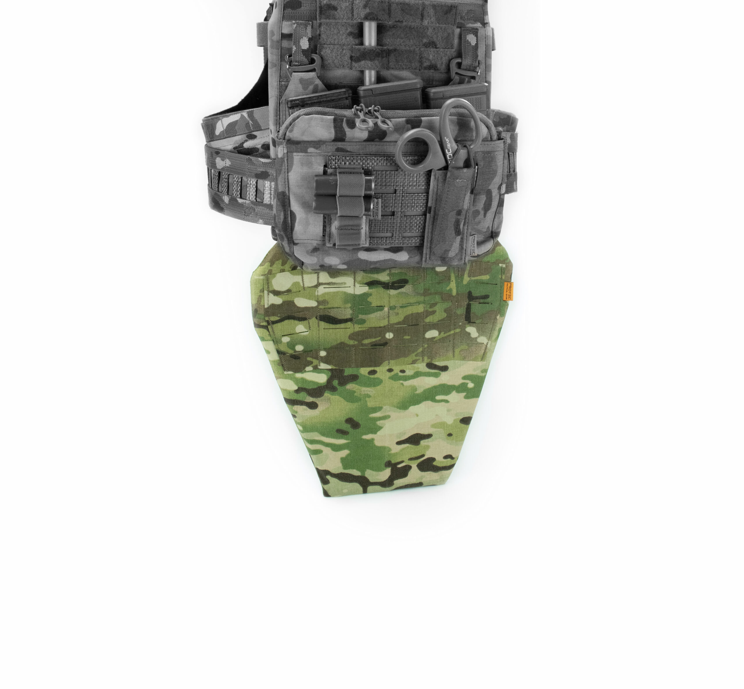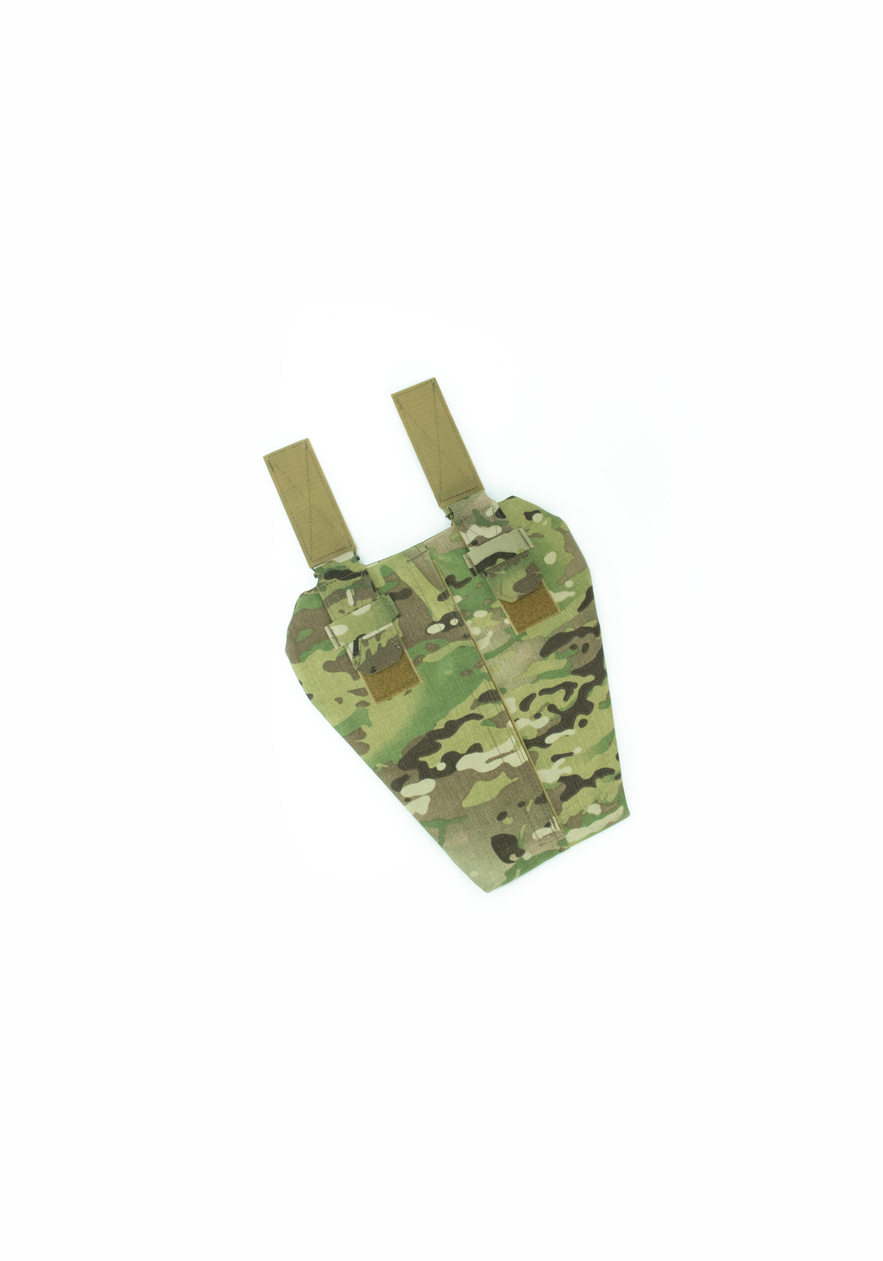 Паховий захист “Лист” має велику площу захисту 32*30см. Завдяки універсальній системі кріплення підходить майже до усих плитоносок від різних виробників. На лицевій стороні розташоване 4 Molle вертикальних та з кожної сторони по 1 під кутом для зручності встановлення та виймання додаткового спорядження такого як:
