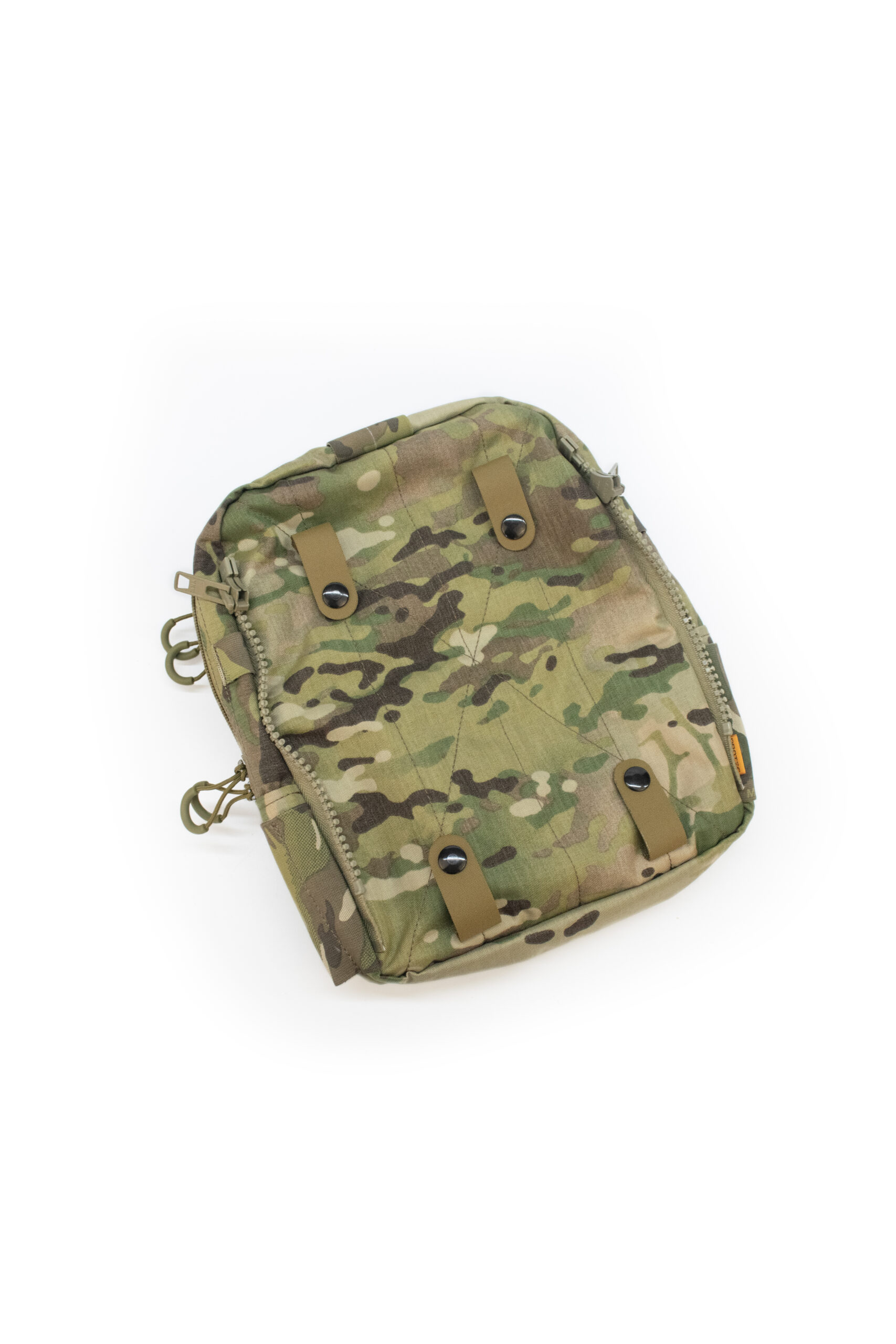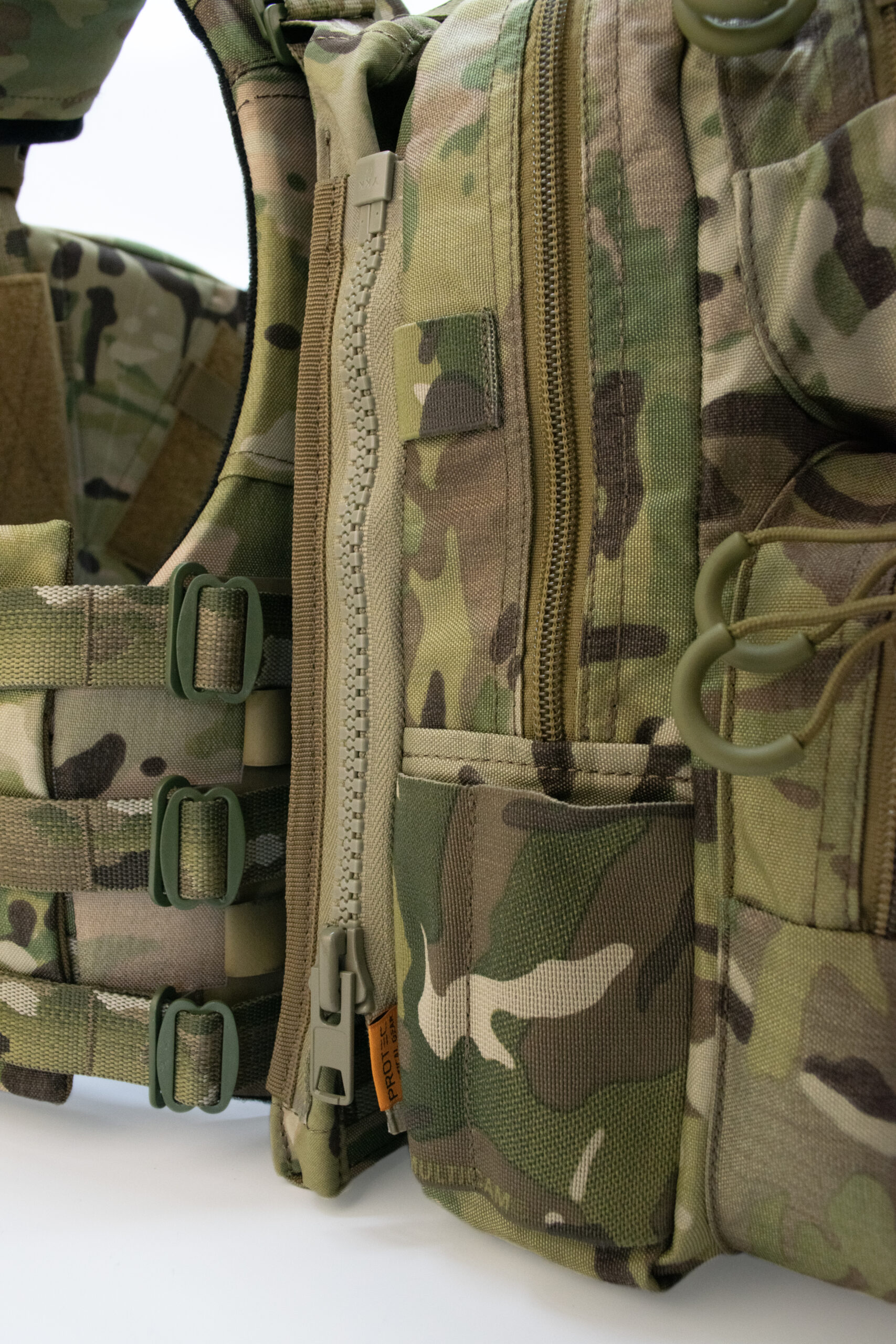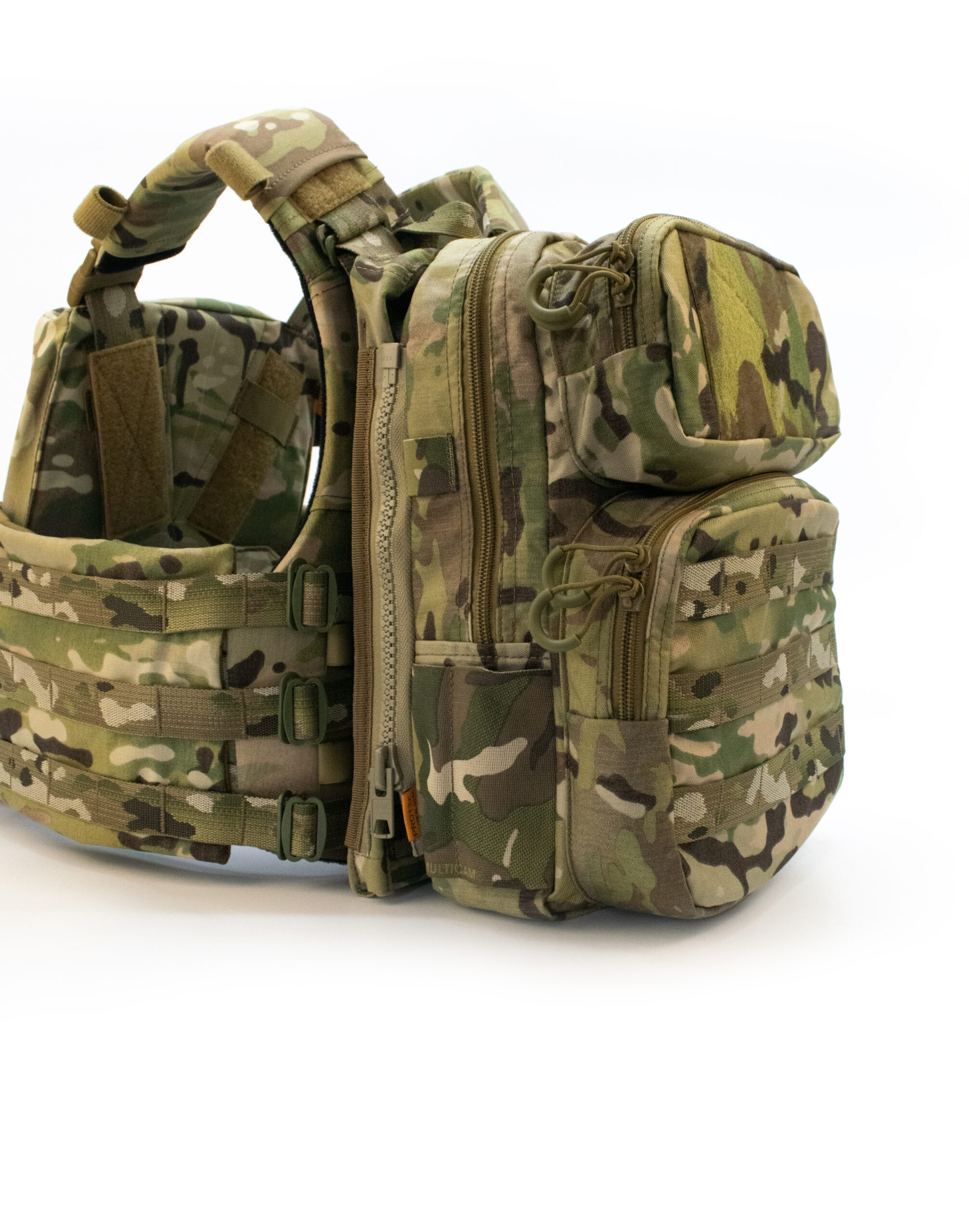 Панель оснащена основним карманом, в якому знаходиться велкро панель для кріплення додаткового обладнання та кріплення під гідратор; із зовнішньої сторони два адіністративних кармани з МОЛЛІ інтерфейсом та велкро панеллю для кріплення індифікаторів, з обох боків панелі розташовані еластичнні відділення для кріплення антен та турнікетів; на кожному кармані панелі встановлено по два бігунки для надійності та пулера для зручності роботи в рукавичках.