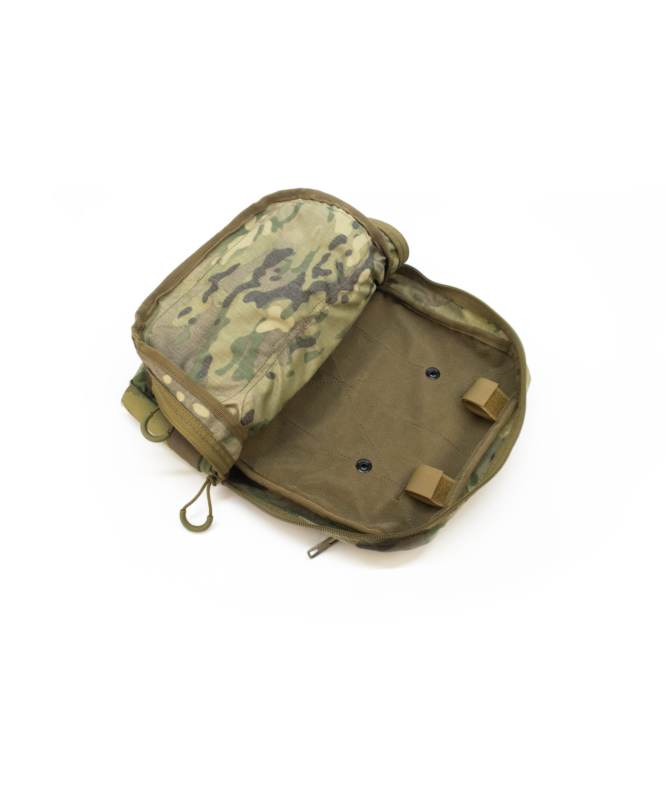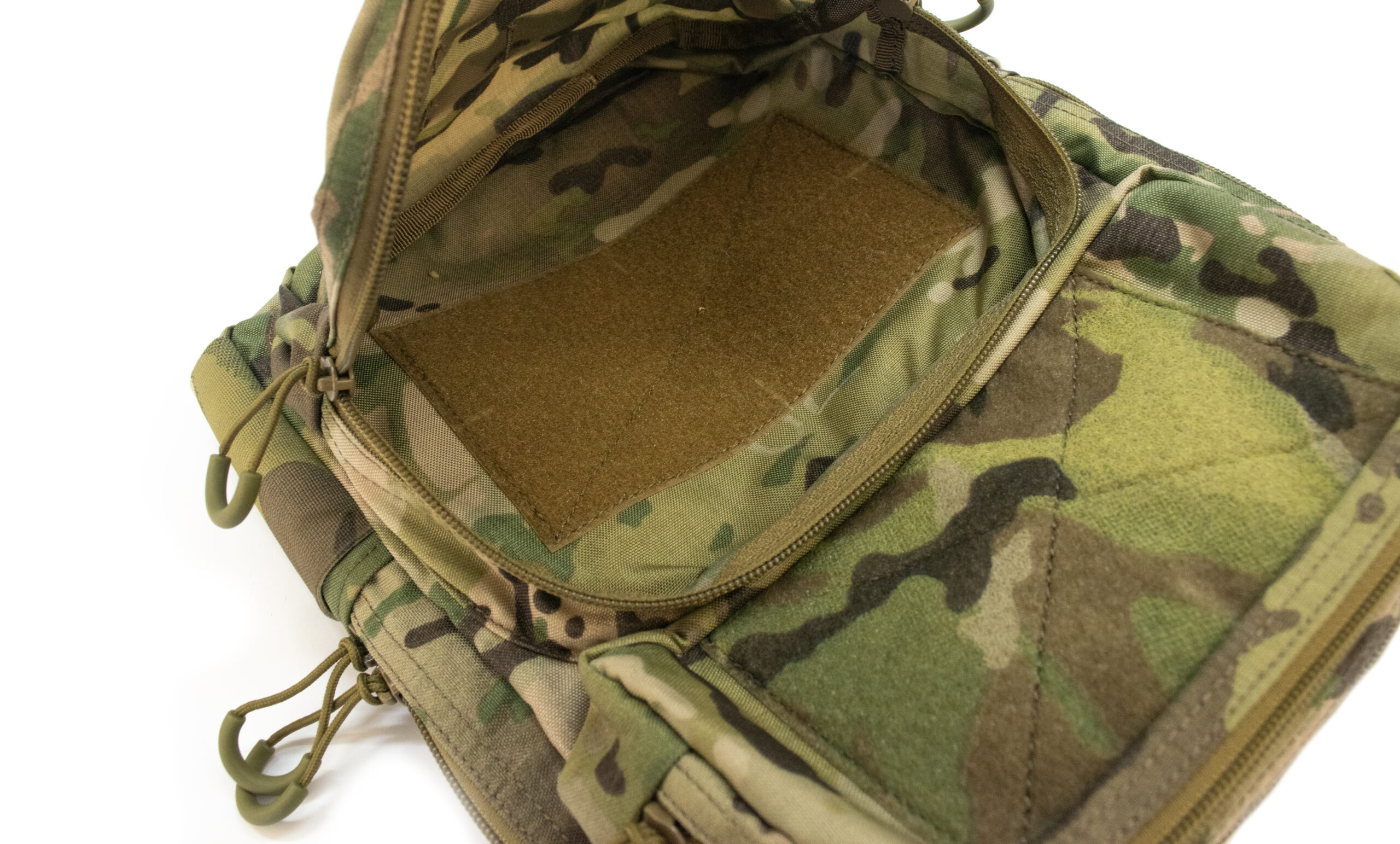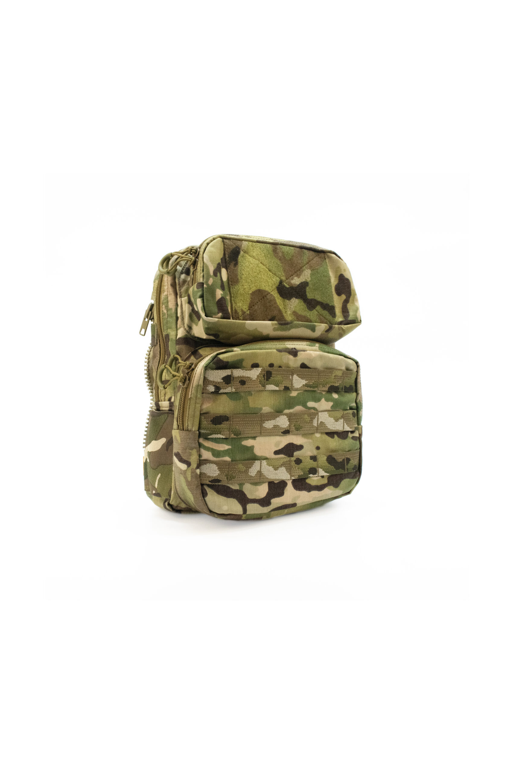 Панель оснащена основним карманом, в якому знаходиться велкро панель для кріплення додаткового обладнання та кріплення під гідратор; із зовнішньої сторони два адіністративних кармани з МОЛЛІ інтерфейсом та велкро панеллю для кріплення індифікаторів, з обох боків панелі розташовані еластичнні відділення для кріплення антен та турнікетів; на кожному кармані панелі встановлено по два бігунки для надійності та пулера для зручності роботи в рукавичках.